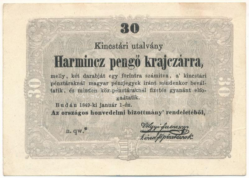 1849. 30kr "Kossuth bankó", "honvedelmi" sajtóhibával T:F szép papír