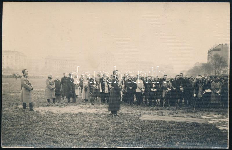 1920 Bp., Horthy Miklós kormányzó eskütétele a Vérmezőn, a hátoldalon feliratozott fotólap, 14x9 cm