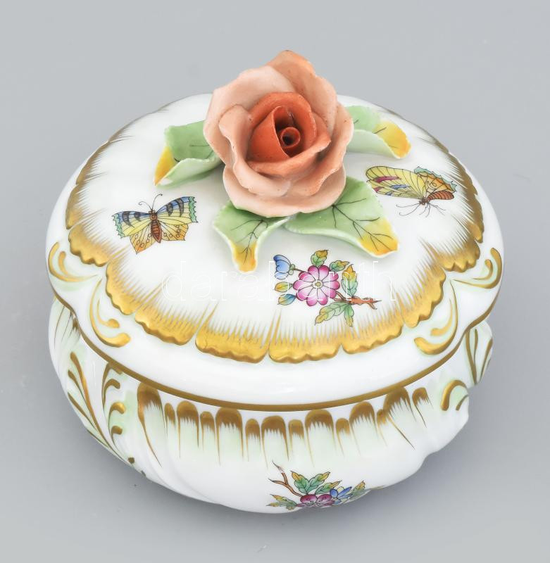 Herendi Viktória mintás bonbonier. Jelzett, rózsán kis pattogzással, d...