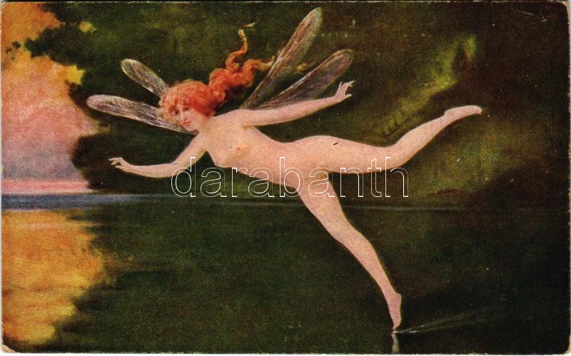 Vodní vázka / Libella / Erotic nude lady, art postcard. Klio 843. s: Penot