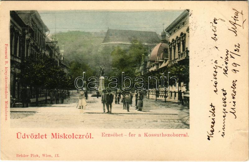 1899 (Vorläufer) Miskolc, Erzsébet tér, Kossuth szobor. Ferenczi B. ki...