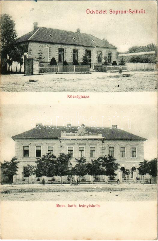 Szil, Sopron-Szil; községháza, Római katolikus leány iskola. Szabó Mihály kiadása (fl)