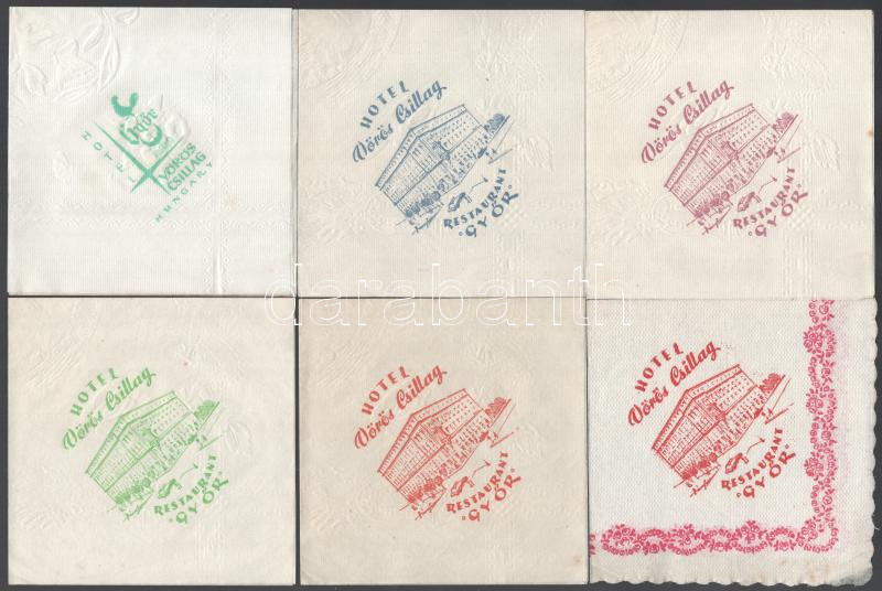 https://www.darabanth.com/en/469-Online-auction/469.0/Art-and-other-collectibles/Advertisement~1000001/cca-1960-Hotel-Voros-Csillag-Gyor-6-db-reklamos-szalveta~II3157854