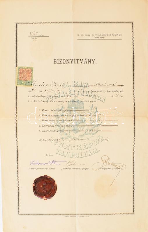 https://www.darabanth.com/en/469-Online-auction/469.0/Art-and-other-collectibles/Documents~500020/1925-Bp-M-kir-posta-es-tavirdatisztkepzo-tanfolyam-bizonyitvanya-alairasokkal-5000K-~II3176309