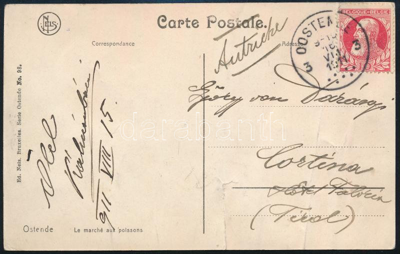 1911 Darányi Gyula ügyvéd (1862-1931), Darányi Kálmán későbbi miniszterelnök rokonának képeslapja Darányi Györgynek, gyűrött
