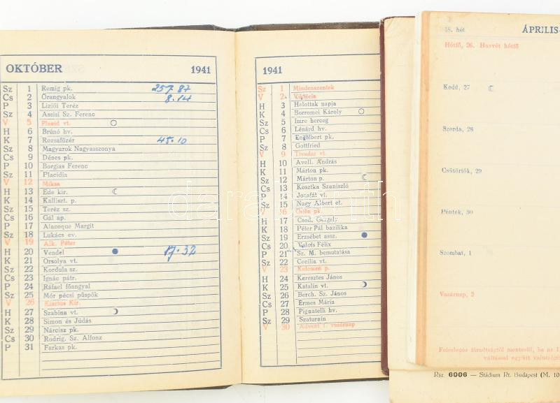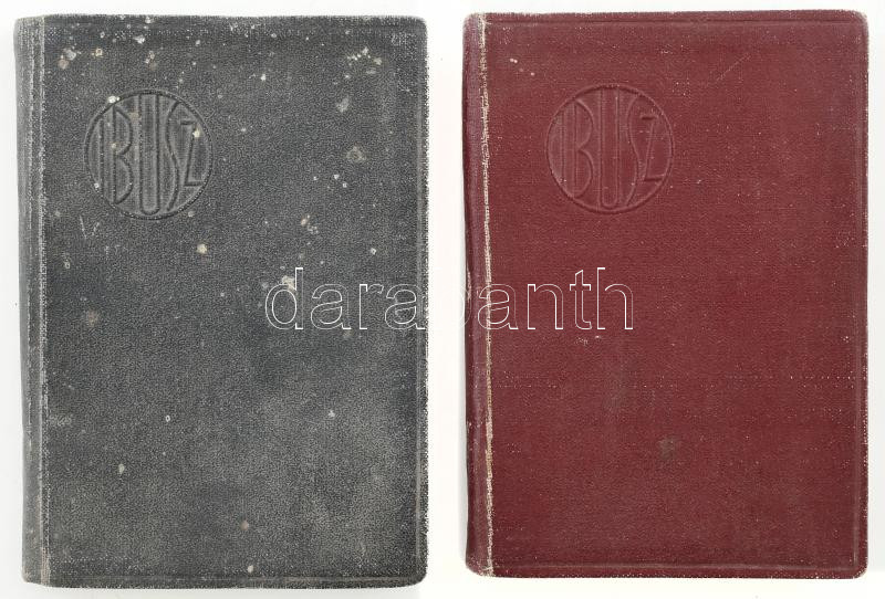 1941-1943 IBUSZ határidőnapló, 2 db, foltos, kopott vászon-kötésekben, bejegyzésekkel.