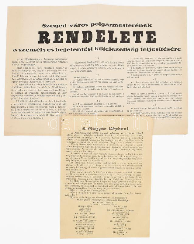 1944, 2 darab röplap: Debrecenben az Ideiglenes Nemzetgyűlés összehívá... https://www.darabanth.com/en/469-Online-auction/469.0/Art-and-other-collectibles/Historical-documents-manuscripts~500021/1944-2-darab-roplap-Debrecenben-az-Ideiglenes-Nemzetgyules-osszehivasarol-plus-Szegeden-a-va~II3172590