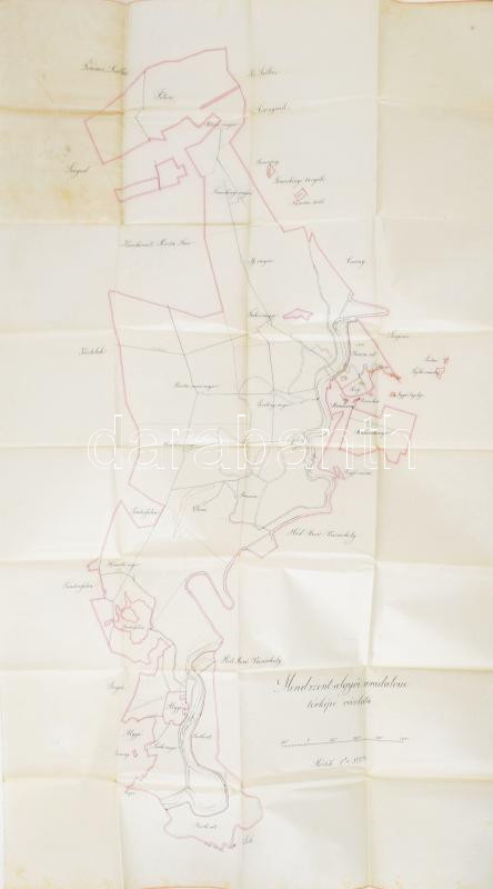 cca 1900 Mindszent-algyői uradalom térképi vázlata, 1:800, kézzel rajzolt térkép, 15 kr okmánybélyeggel, 95×55 cm