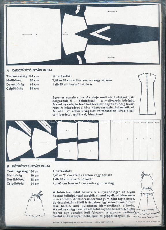 1983 Minerva varroda. A modelleket Vámos Magda tervezte. Női ruha szabásminták, bontatlan csomagolásban.