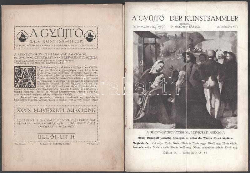 1917 A gyűjtő. Der Kunstsammler. Művészeti folyóirat. Tardos-Taussig L... https://www.darabanth.com/en/469-Online-auction/469.0/Books/Books-Architecture-Art~1000022/1917-A-gyujto-Der-Kunstsammler-Muveszeti-folyoirat-Tardos-Taussig-Laszlo-arveresi-katal~II3173987