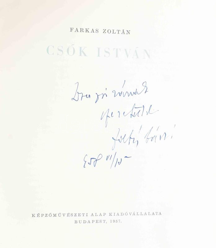 Farkas Zoltán: Csók István. (DEDIKÁLT). Magyar Mesterek sorozat. Bp., ... https://www.darabanth.com/en/469-Online-auction/469.0/Books/Books-Architecture-Art~1000022/Farkas-Zoltan-Csok-Istvan-DEDIKALT-Magyar-Mesterek-sorozat-Bp-1957-Kepzomuveszeti-A~II3135348
