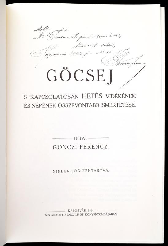 Gönczi Ferenc: Göcsej s kapcsolatosan Hetés vidékének és népének összevontabb ismertetése - reprint. 689p. Kiadói vászonkötésben