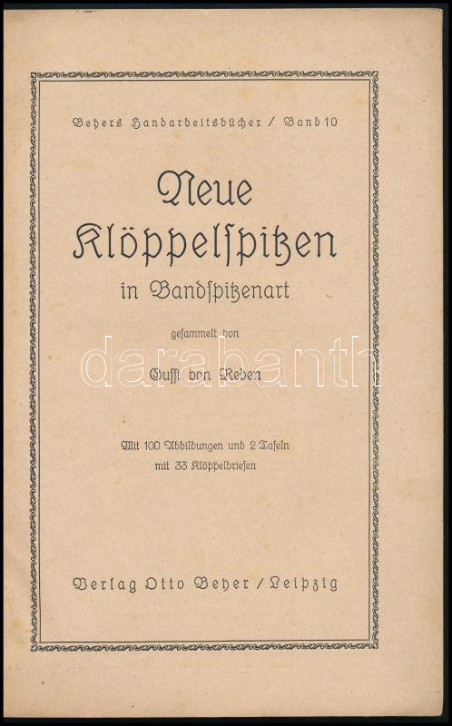 Gussi von Reden: Neue Klöppel-Spitzen in Bandspitzenart. Beyers Handar... https://www.darabanth.com/en/469-Online-auction/469.0/Books/Books-Architecture-Art~1000022/Gussi-von-Reden-Neue-Kloppel-Spitzen-in-Bandspitzenart-Beyers-Handarbeitsbucher-Band-10-Leipzig~II3097355