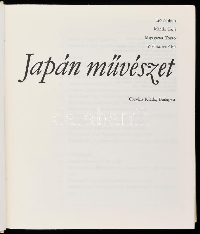 Ito Nobuo - Meada Taiji - Mijagawa Torao - Yoshizawa Chu: Japán művészet. Ford.: Halmy Ferenc. Bp., 1980, Corvina. Fekete-fehér és színes képekkel illusztrálva. Kiadói kartonált papírkötés.
