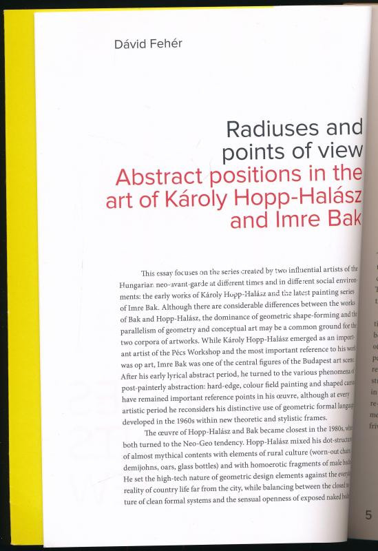 Károly Hopp-Halász / Imre Bak. Radiuses and points of view. Szerk.: Róna Kopeczky. Szöveg Dávid Fehér. [Bp.],2017, ACB Researchlab, 81+1 p. Angol nyelven. Kiadói papÃrkötés, a borÃtó hátán nagyon apró sérüléssel.