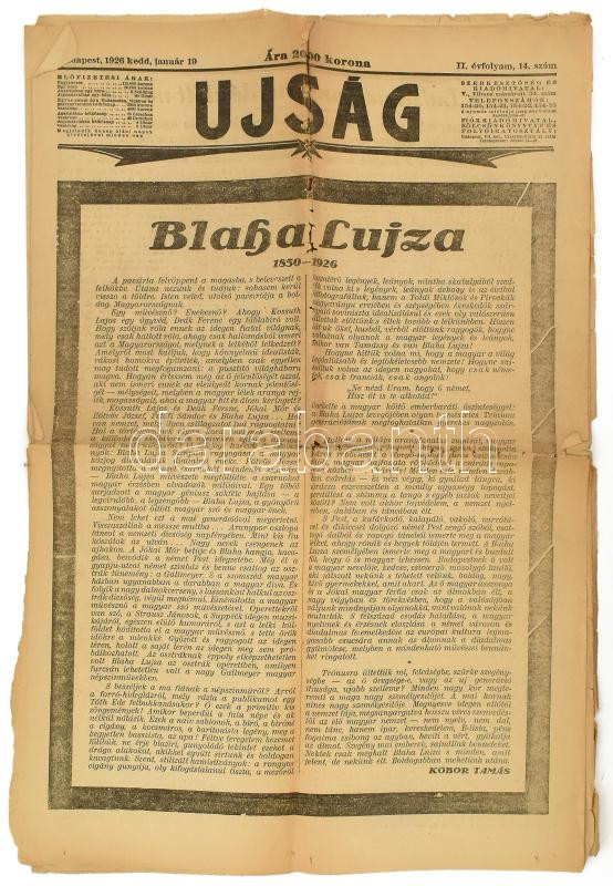 Kéry Gyula: Blaha Lujza élete. Jókai Mór bevezetÅ‘ soraival. Bp., 1896. Rózsavölgyi és Társa. Kiadói illusztrált papÃrkötésben, enyhén kopott. + hozzá az 1926-os Ujság Blaha Lujza haláláról tudósÃtó száma