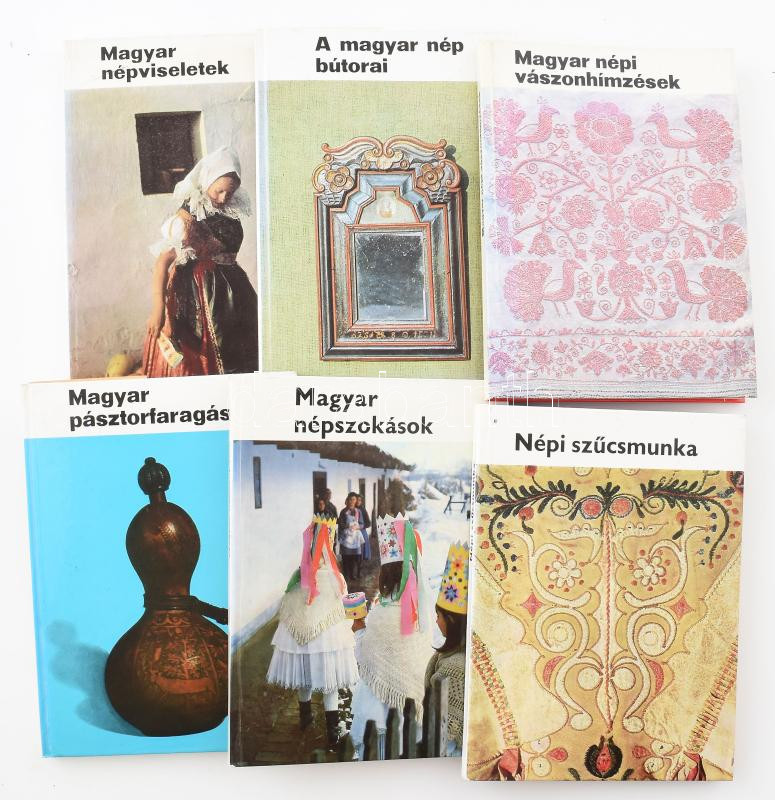 Magyar népművészet sorozat 6 kötete: Gáborján Alice: Magyar népviseletek. K. Csilléry Klára: A magyar nép bútorai. Manga János: Magyar pásztorfaragások. Dömötör Tekla: Magyar népszokások, 2. javított kiadás. Fél Edit: Magyar népi vászonhímzések. Kresz Mária: Népi szűcsmunka. Bp., 1972-79, Corvina. Kiadói kartonált papírkötés, borítókon apró kopásnyomokkal, jó állapotban.