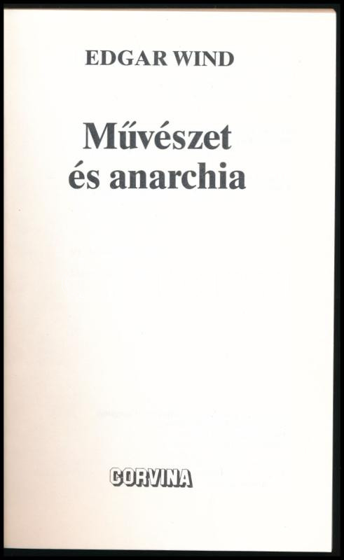 Wind, Edgar: Művészet és anarchia. Szeged, 1990, Corvina. Kiadói papírkötés, jó állapotban.