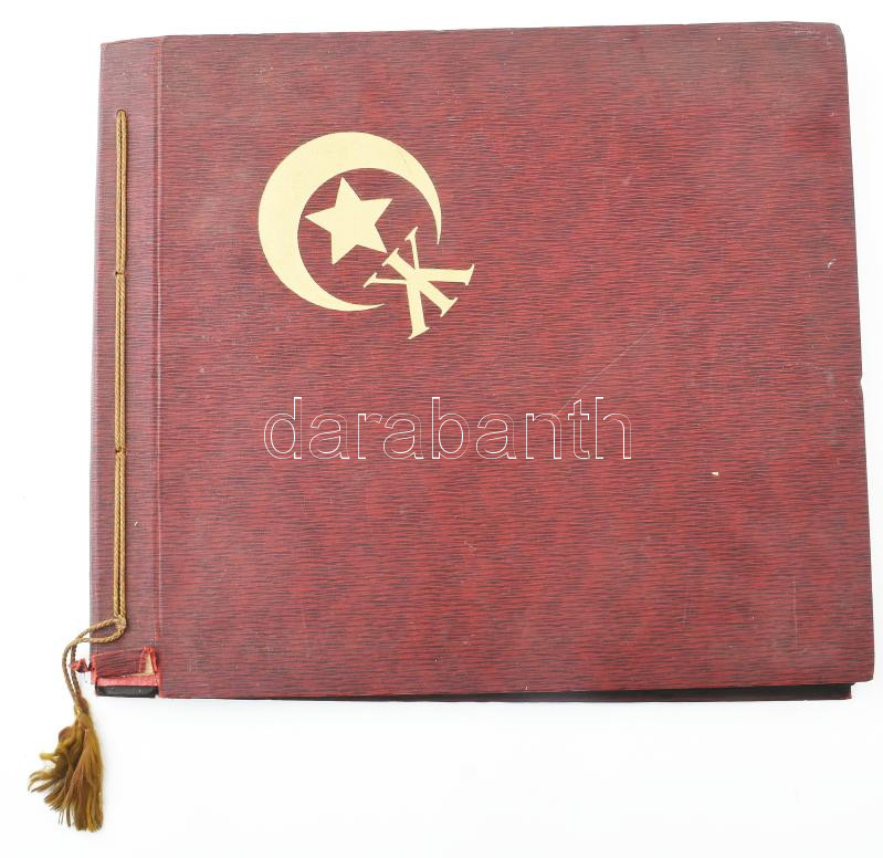 cca 1920-1930 Halbmond-Teppiche. Német nyelvű szÅ‘nyeg áruminta katalógus, rendkÃvül gazdag szÃnes képanyaggal illusztrált. Kiadói haránt-alakú, zsinórfűzött aranyozott egészvászon-kötésben, kissé kopott borÃtóval, a gerinc alján kis sérüléssel, 28 p., 34x39 cm