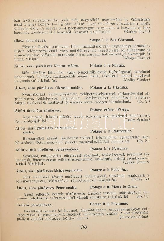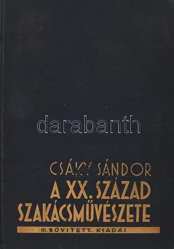 Csáky Sándor: A huszadik század szakácsművészete. Bp., 1936.,Petőfi Irodalmi Vállalat,(Mor[avská] Ostrava, Keller-ny.),8+832 p. + 7 t. (két oldalas) + 61+15 p. Szövegközti illusztrációkkal. Harmadik, bővített kiadás. Kiadói aranyozott egészvászon-kötés, kopott borítóval, a gerincen sérüléssel, hiányzó elülső szennylappal,de belül jó állapotban.