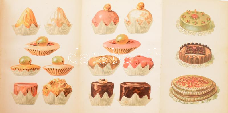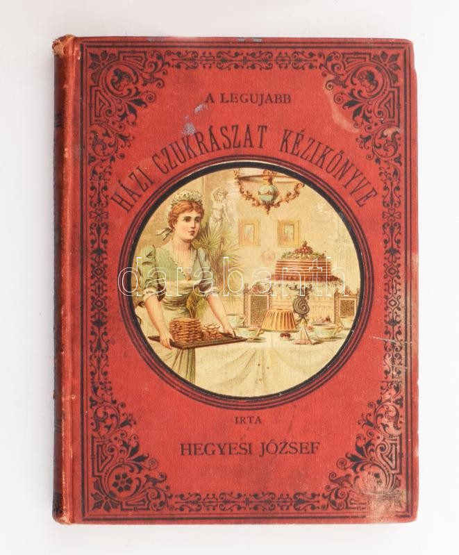 Hegyesi József: A legujabb házi czukrászat kézikönyve. Bp., 1893, szerzői kiadás (Czettel és Deutsch-ny.), 247 p.+ 1 (kihajtható, színes litográfia) t. Negyedik, javitott és bővitett kiadás. Kiadói illusztrált egészvászon-kötésben, kopott, foltos borítóval, a gerinc felső részén kis sérüléssel.