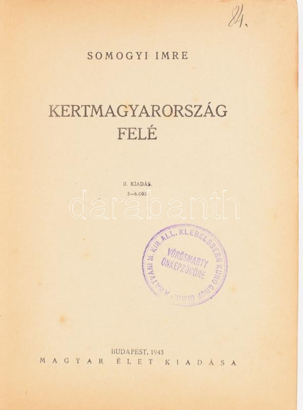 Somogyi Imre: Kertmagyarország felé. Bp., 1943, Magyar Élet. Kiadói fé...