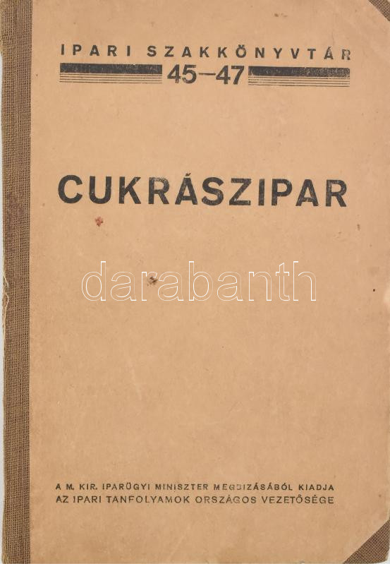 Szilassy Alfonz: Cukrászipar. I. Anyagismeret, II. Üzemtani ismeretek, III. Termelés, IV. Árszabás, V. Az ipar gyakorlása. Ipari szakkönyvtár 45-47. Bp.,é.n.[1942] ,Ipari tanfolyamok Országos Vezetősége, (Pallas-ny.), 260+2 p. Kiadói félvászon-kötés, a hátsó táblán kis törésnyommal, kissé kopott borítóval, ceruzás aláhúzásokkal és bejegyzésekkel.
