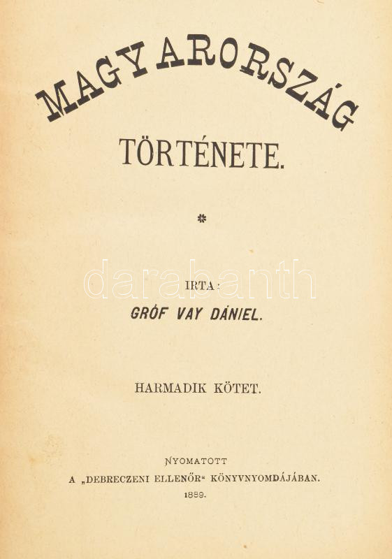 Vay Dániel, gróf: Magyarország története. I. és III. kötet. (a II. hiá... https://www.darabanth.com/en/469-Online-auction/469.0/Books/Books-History~1000037/Vay-Daniel-grof-Magyarorszag-tortenete-I-es-III-kotet-a-II-hianyzik--Debrecen-1~II3115735