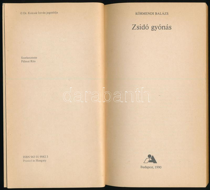 https://www.darabanth.com/en/469-Online-auction/469.0/Books/Books-Judaica~1000029/Kormendi-Balazs-Zsido-gyonas-Bp-1990-InterArt-Studio-Kiadoi-papirkotes-a-gerincen-k~II3135157