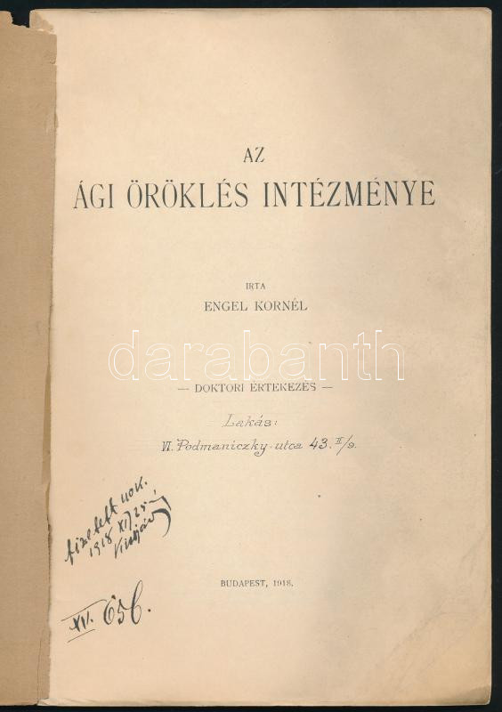 https://www.darabanth.com/en/469-Online-auction/469.0/Books/Books-Law~1000019/Engel-Kornel-Az-agi-orokles-intezmenye-Doktori-ertekezes-Bp-1918-hianyos-papirkot~II3172458