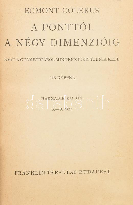 Egmont Colerus: A ponttól a négy dimenzióig. Amit a geometriából minde... https://www.darabanth.com/en/469-Online-auction/469.0/Books/Books-Natural-sciences-Medicine~1000025/Egmont-Colerus-A-ponttol-a-negy-dimenzioig-Amit-a-geometriabol-mindenkinek-tudnia-kell-Ford~II3126667