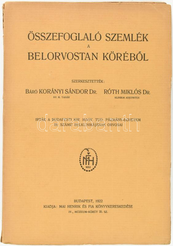 Összefoglaló szemlék a belorvostan köréből I-II. köt. Szerk.: Korányi ... https://www.darabanth.com/en/469-Online-auction/469.0/Books/Books-Natural-sciences-Medicine~1000025/Osszefoglalo-szemlek-a-belorvostan-korebol-I-II-kot-Szerk-Koranyi-Sandor-Roth-Miklos~II3131298