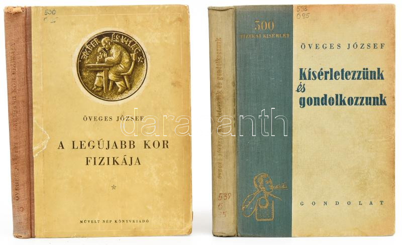 Öveges József 2 db könyve: A legújabb kor fizikája. Bp., 1951, Művelt Nép. ElsÅ‘ kiadás. Kiadói félvászon-kötés, kissé viseltes borÃtóval, intézményi bélyegzÅ‘kkel. + KÃsérletezzünk és gondolkozzunk. Bp., 1960, Gondolat. ElsÅ‘ kiadás. Kiadói félvászon-kötés, kissé fakó gerinccel, intézményi bélyegzÅ‘kkel.