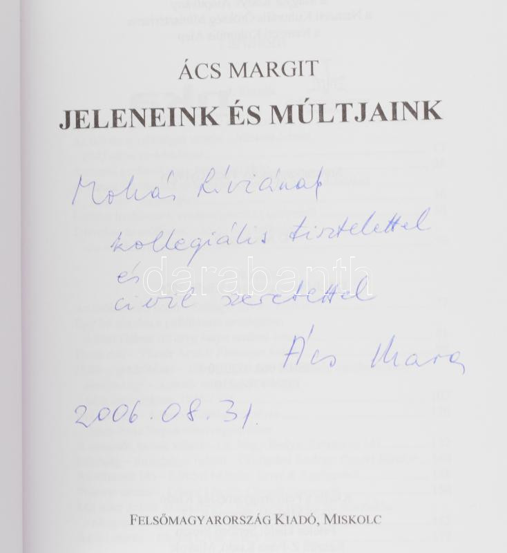 Ács Margit: Jeleneink és múltjaink. A szerző, Ács Margit (1941-) Kossu... https://www.darabanth.com/en/469-Online-auction/469.0/Books/Books-Other-rarities~2000025/Acs-Margit-Jeleneink-es-multjaink-A-szerzo-Acs-Margit-1941-Kossuth-dijas-iro-essze-~II3170754