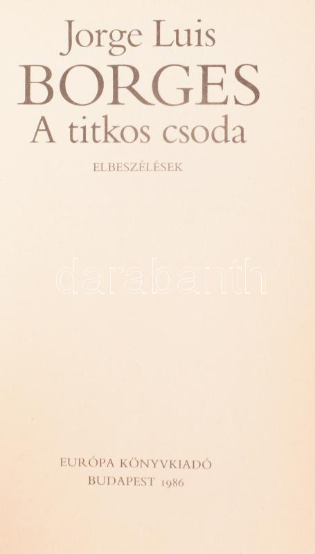 https://www.darabanth.com/en/469-Online-auction/469.0/Books/Books-Other-rarities~2000025/Borges-Jorge-Luis-A-titkos-csoda-Bp-1986-Europa-Kiadoi-egeszvaszon-kotes~II3156381