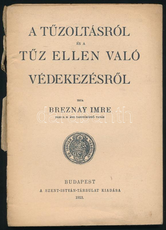Breznay Imre: A tűzoltásról és a tűz ellen való védekezésről. Bp., 191... https://www.darabanth.com/en/469-Online-auction/469.0/Books/Books-Other-rarities~2000025/Breznay-Imre-A-tuzoltasrol-es-a-tuz-ellen-valo-vedekezesrol-Bp-1913-Szent-Istvan-Tar~II3171952