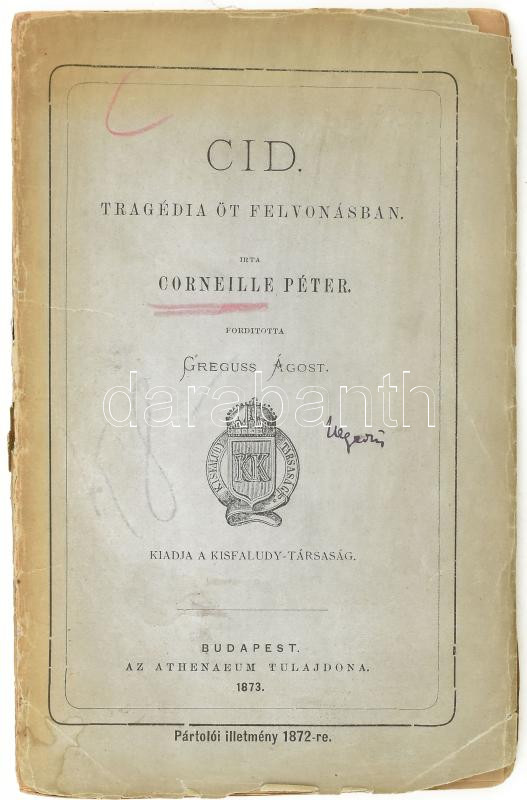 https://www.darabanth.com/en/469-Online-auction/469.0/Books/Books-Other-rarities~2000025/Corneille-Peter-Cid-Tragedia-ot-felvonasban-Ford-Greguss-Agost-Bp-1873-Kisfaludy-Tars~II3085332