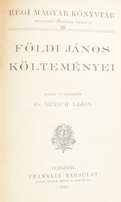 Földi János, 2 mű egy kötetben: Földi János költeményei. Kiadta és bev... https://www.darabanth.com/en/469-Online-auction/469.0/Books/Books-Other-rarities~2000025/Foldi-Janos-2-mu-egy-kotetben-Foldi-Janos-koltemenyei-Kiadta-es-bevezette-Dr-Mixich-La~II3077447