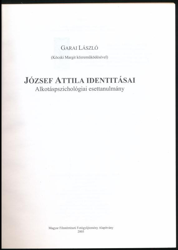 Garai László: József Attila identitásai. Alkotáspszichológiai esettanu... https://www.darabanth.com/en/469-Online-auction/469.0/Books/Books-Other-rarities~2000025/Garai-Laszlo-Jozsef-Attila-identitasai-Alkotaspszichologiai-esettanulmany-Bp-2005-Magya~II3159250