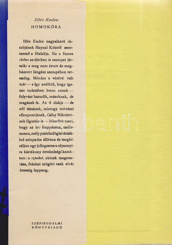 Illés Endre: Homokóra. Komédia és erkölcsrajz. Három felvonás. Budapest, 1962. Szépirodalmi Könyvkiadó (Kossuth ny.) 107 + [3] p. Egyetlen kiadás. Dedikált: ,,Belia Györgyéknek nagy szeretettel: Illés Endre 1962''. Prov.: Belia György [Belia György (1923-1982) irodalomtörténész, kritikus, műfordító, az Európa Kiadó szerkesztője, a Szépirodalmi Könyvkiadó klasszikus csoportjának vezetője. A magyar klasszikusok kiadása mellett a Babits-életműkiadásban is közreműködött.] Aranyozott kiadói egészvászon kötésben, Loránt Lilla által illusztrált, színes kiadói védőborítóban. Jó példány.