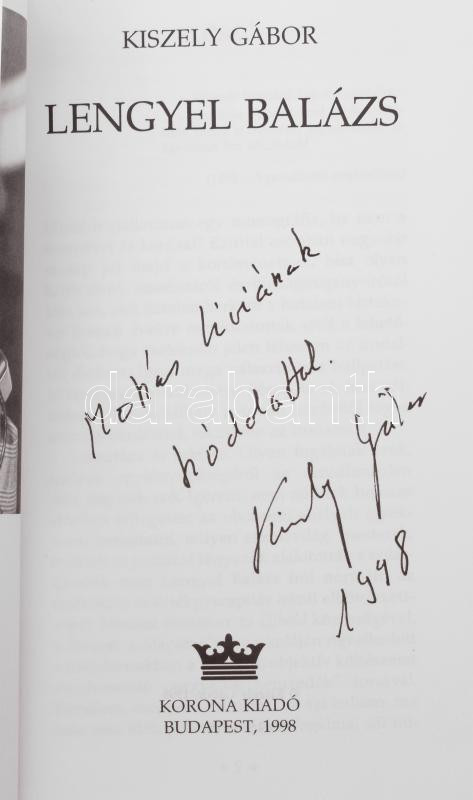 Kiszely Gábor: Lengyel Balázs. A szerző, Kiszely Gábor (1949-2011) író... https://www.darabanth.com/en/469-Online-auction/469.0/Books/Books-Other-rarities~2000025/Kiszely-Gabor-Lengyel-Balazs-A-szerzo-Kiszely-Gabor-1949-2011-iro-tortenesz-altal-Mo~II3164257