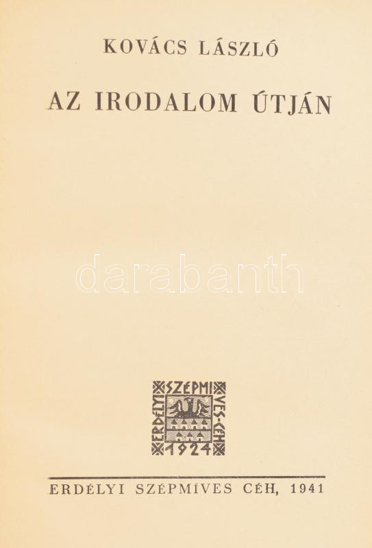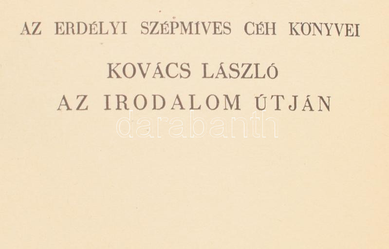 Kolozsvár, 1941. Erdélyi Szépmíves ... https://www.darabanth.com/en/469-Online-auction/469.0/Books/Books-Other-rarities~2000025/Kovacs-Laszlo-Az-irodalom-utjan-Kolozsvar-1941-Erdelyi-Szepmives-Ceh-265-l-3-sztl-~II3174445