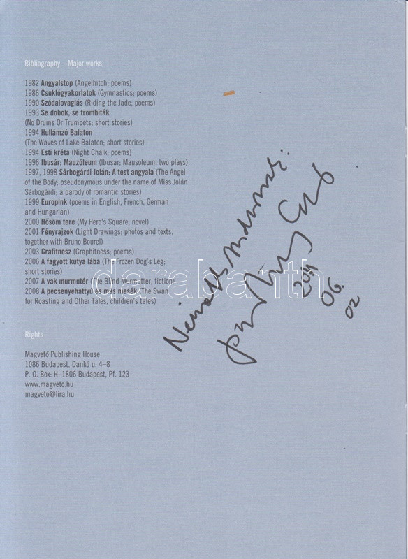 (Budapest, 2007. Hungarian Book Foundation Translation Fund [ny. n.] [8] p.
