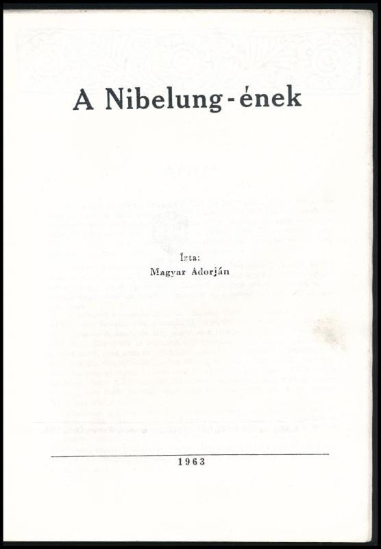 Magyar Adorján: A Nibelung-ének. Warren, 1963, A Fáklya, 24+(2) p. Emi...