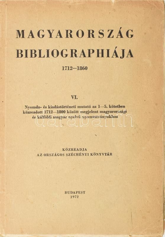 Magyarország bibliográphiája VI. kötet. 1712-1860. Bp., 1972, OSZK. Kiadói papírkötésben