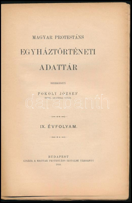 Magyar Protestáns Egyháztörténeti adattár. IX. évf. Szerk.: Pokoly Józ... https://www.darabanth.com/en/469-Online-auction/469.0/Books/Books-Religion~2000026/Magyar-Protestans-Egyhaztorteneti-adattar-IX-evf-Szerk-Pokoly-Jozsef-Bp-1910-Magyar-~II3076617