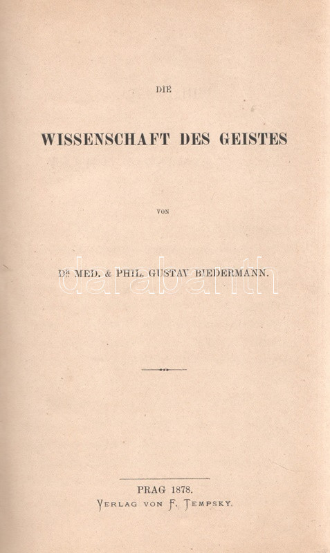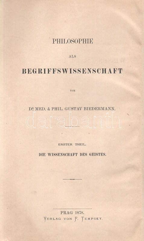 Gustav Biedermann (1815-1890) cseh orvos és filozófiai író fő munkája, a Philosophie als Begriffswissenschaft (A filozófia, mint fogalmi tudomány) 1878-1880 között három részbenjelent meg. A munka első két kötetében a szellemtudományok és a természettudományok rendszerét foglalja a hagyományos német spekulatív filozófia keretébe.