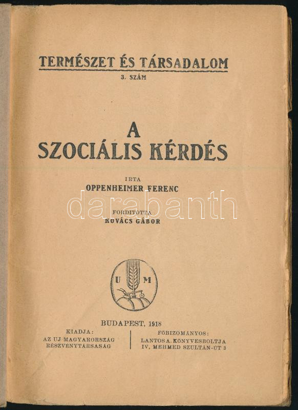 Oppenheimer Ferenc: A szociális kérdés. Ford.: Kovács Gábor. Természet... https://www.darabanth.com/en/469-Online-auction/469.0/Books/Books-Social-sciences~1000026/Oppenheimer-Ferenc-A-szocialis-kerdes-Ford-Kovacs-Gabor-Termeszet-es-Tarsadalom-3-sz-~II3132527