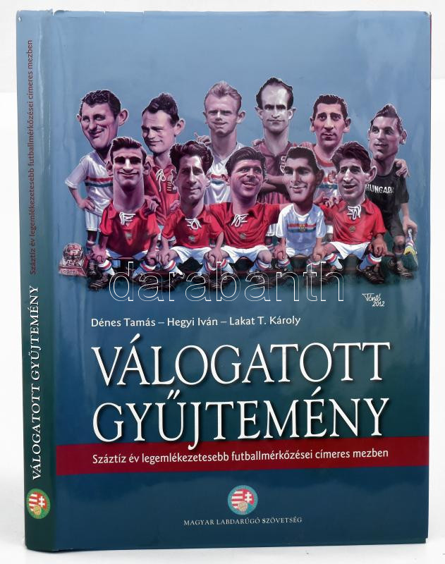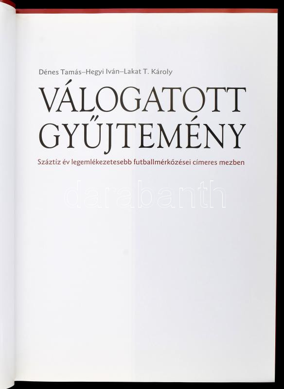 Dénes Tamás Lakat T. Károly Hegyi Iván: Válogatott gyűjtemény - SzáztÃz év legemlékezetesebb futballmérkÅ‘zései cÃmeres mezben. 2012, MLSZ, kartonált papÃrkötés, papÃr védÅ‘borÃtóval, Hegyi Iván által dedikált.