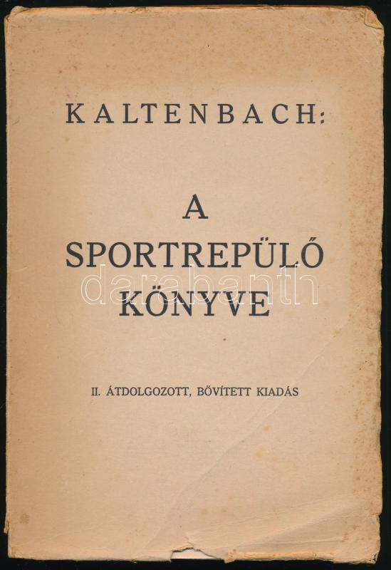 Kaltenbach Henrik - Lehoczky Béla: A sportrepülő könyve. Kassa, 1942, ,,Wiko" Kő- és Könyvnyomdai Műintézet, 246+(14) p.+ 1 t.+ 1 (kihajtható) t. Második, átdolgozott és bővített kiadás. Szövegközti és egészoldalas képekkel, ábrákkal illusztrálva. Kiadói papírkötés, kissé foltos, sérült borítóval, helyenként kissé foltos lapokkal.